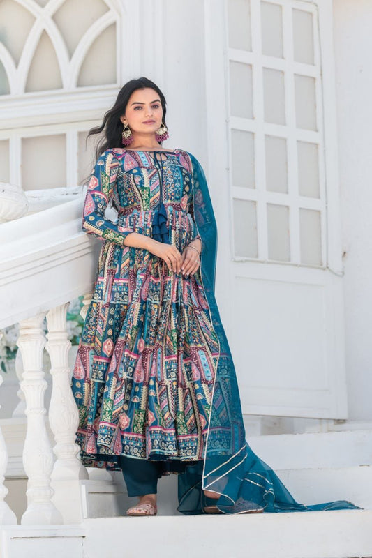 Silk anarkali Full Flair Festival wedding wear gown Indian dress