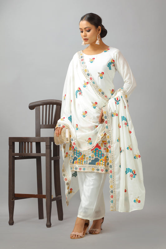 White Ready To Wear Salwar Kameez Indian Dress Suit Set