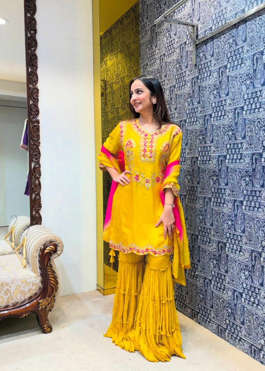 Yellow Sharara Suit Set Readymade Indian wedding dress salwar Kameez