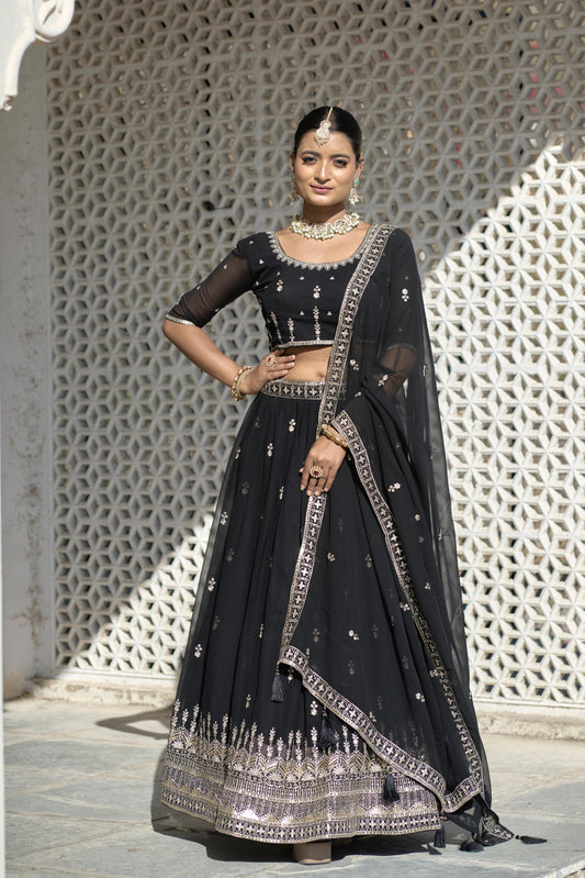 Black Ready To Wear Wedding lehenga choli Indian dress