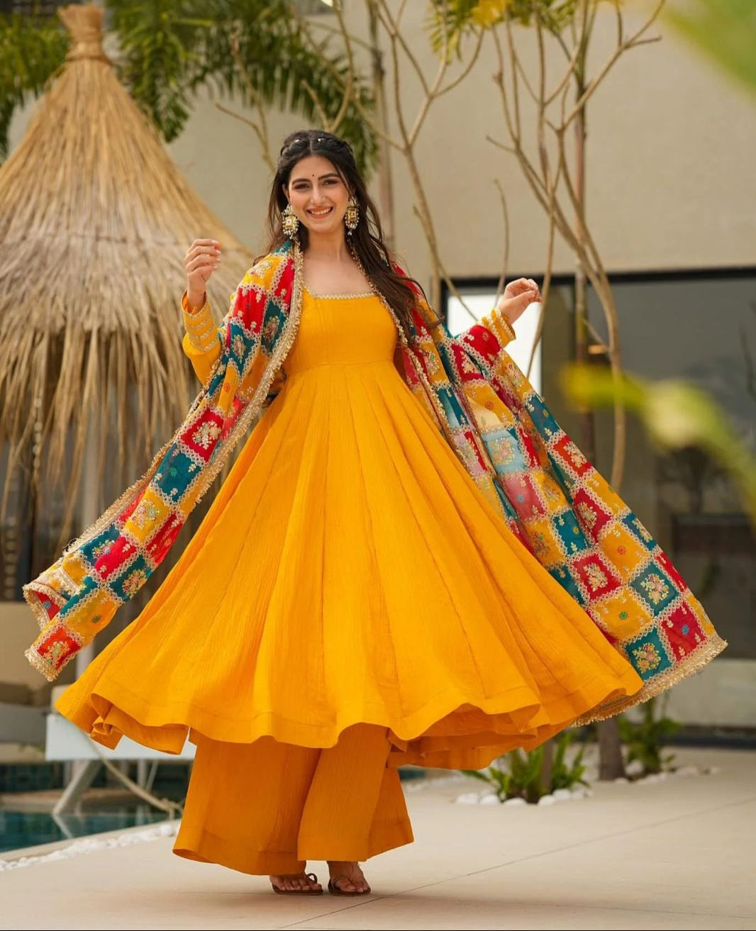 Haldi Anarkali Full Flair Readymade Indian wedding Festival partywear salwar kameez dress