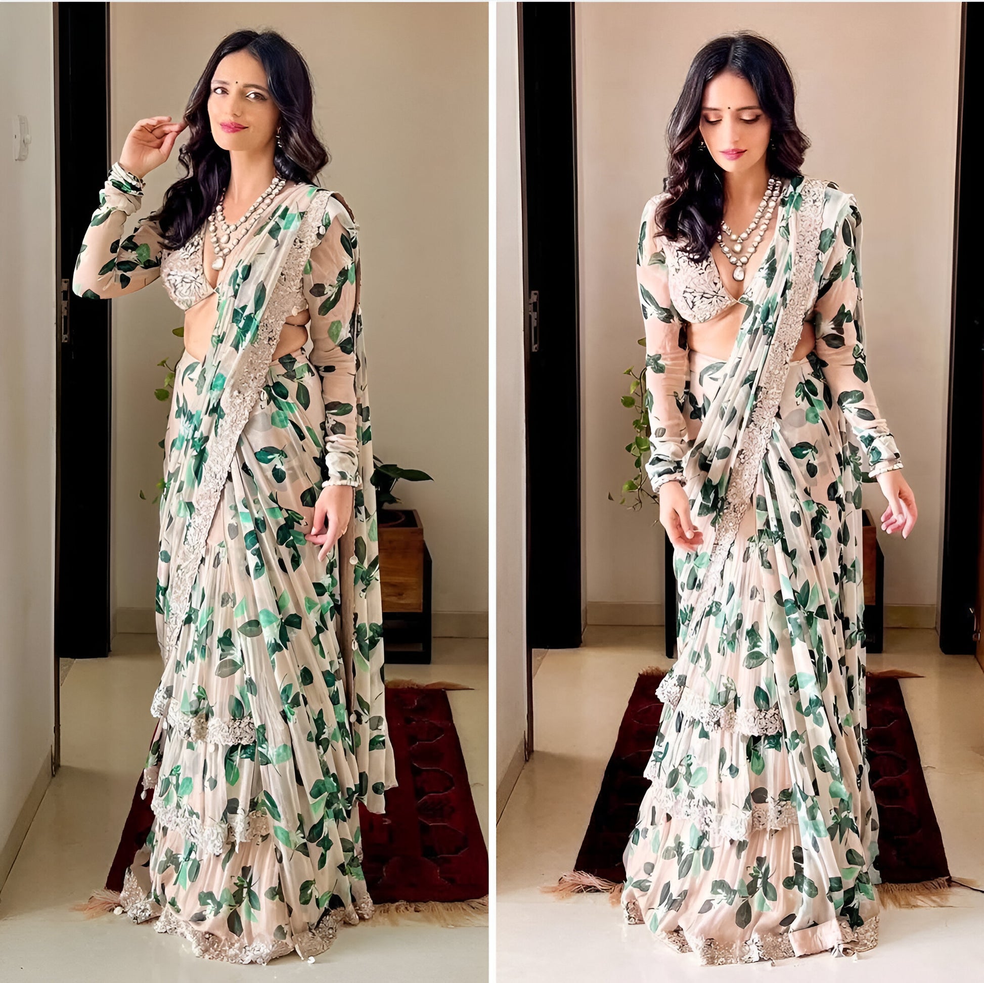Indowestern Designer Partywear Readymade Wedding saree with blouse