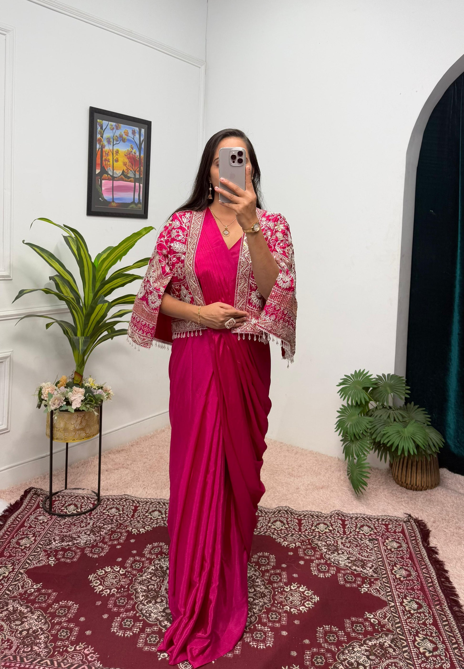 Indowestern Designer wedding partywear saree with stitched blouse and koti