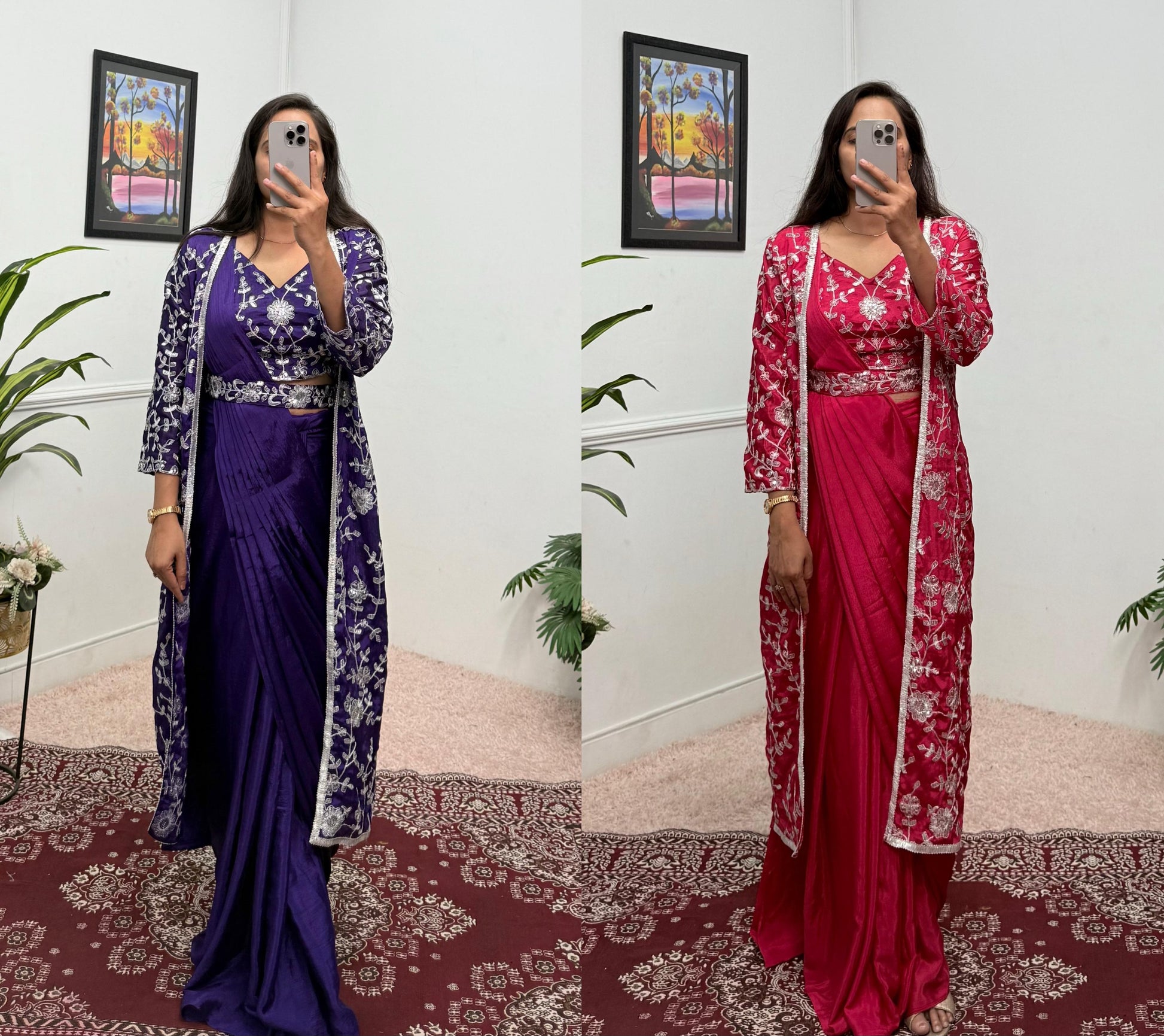 Indowestern Wedding Festival Partywear Saree With Koti Stitched Ready To Wear
