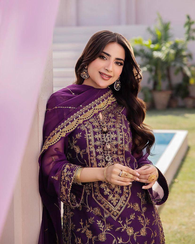 *TOP* : *CHINON SILK* WITH *SEQUINS & JARI EMBROIDERY* WORK (FULLY STITCHED)