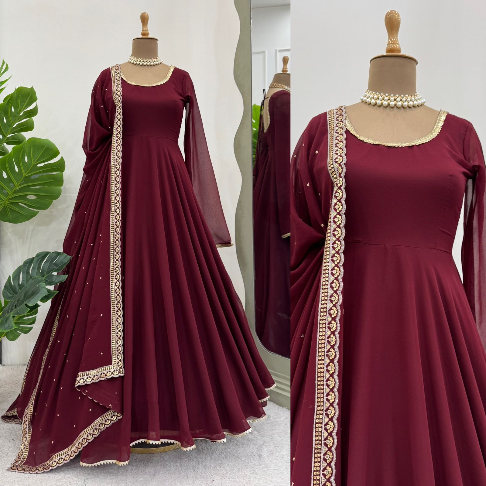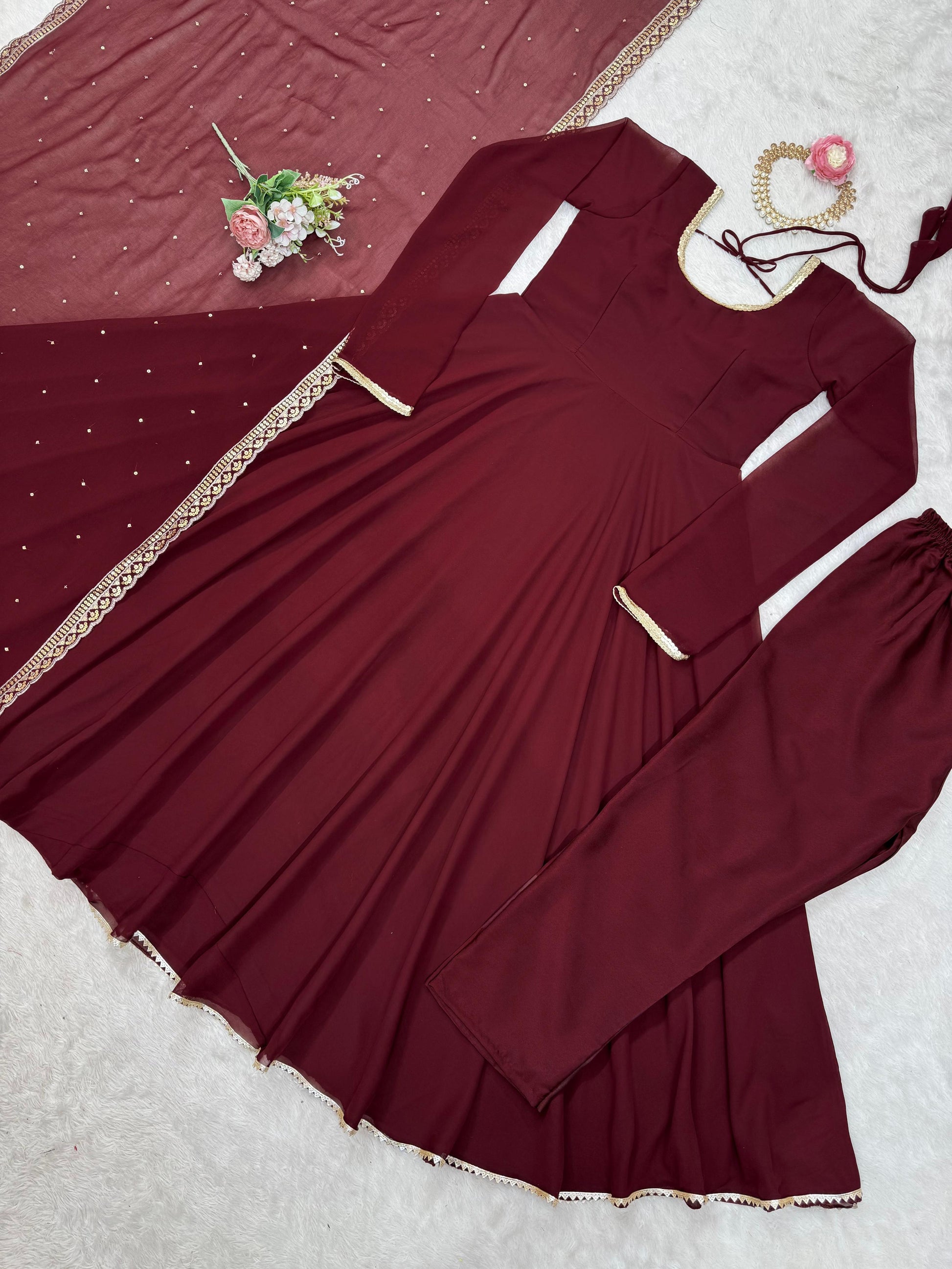 Maroon Anarkali Salwar Kameez Suit Set Readymade