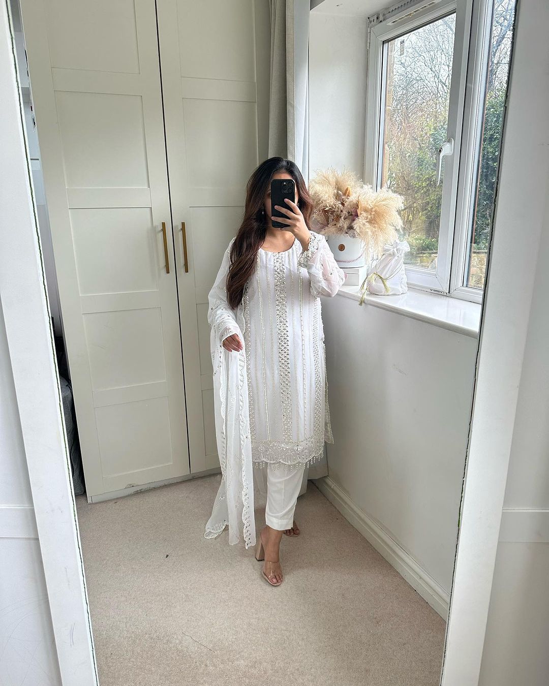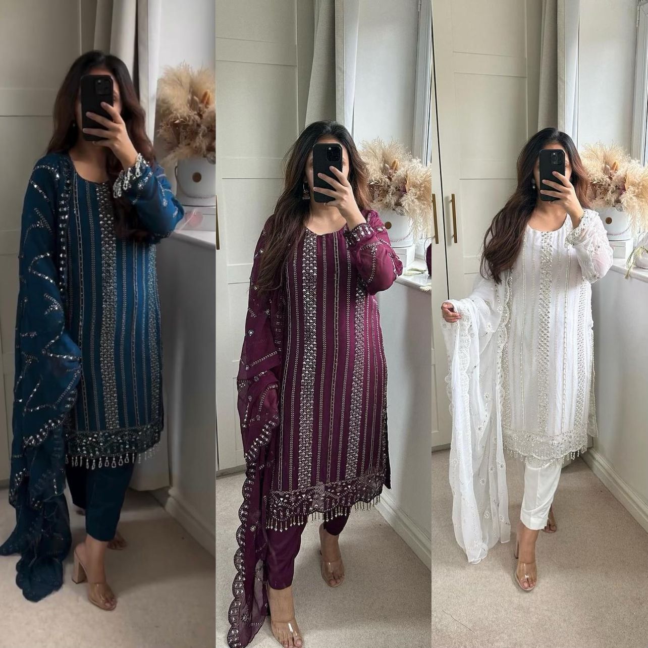 👚 *Long Top Fabric* :- Hevay Faux Georgette Fabric With Heavy Embroidery 5mm Sequence Work *(Fully Sleeve’s)*