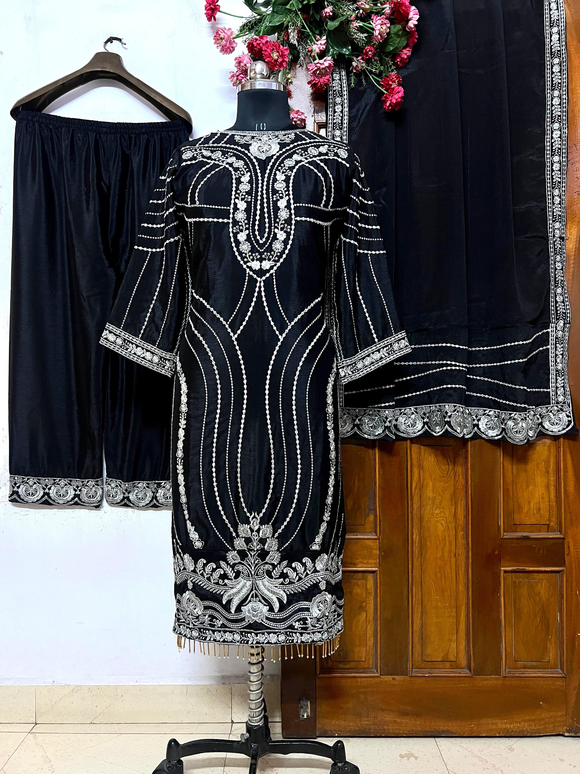 👉 *PLAZZO* : CHINON SILK WITH *EMBROIDERY WORK* (FULLY STITCHED)