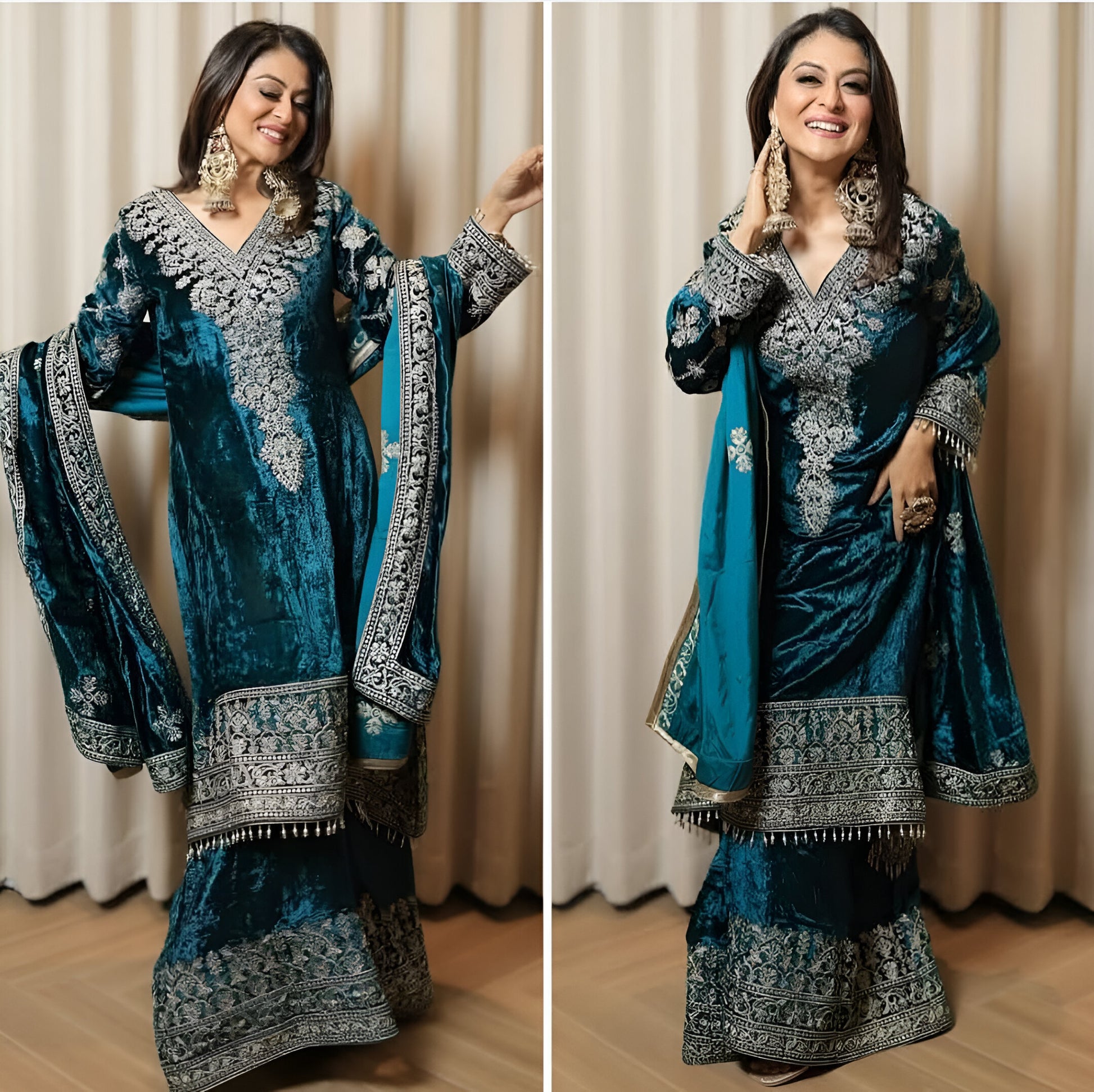 *PLAZZO* : HEAVY VELVET WITH SEQUINS EMBROIDERY WORK *FULLY STITCHED*
