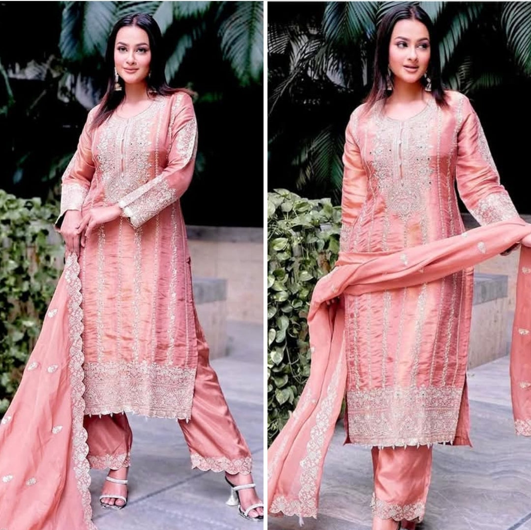 *Presenting New Chinon Top -Pent Dupatta Set Fully Stitched Ready To Wear *