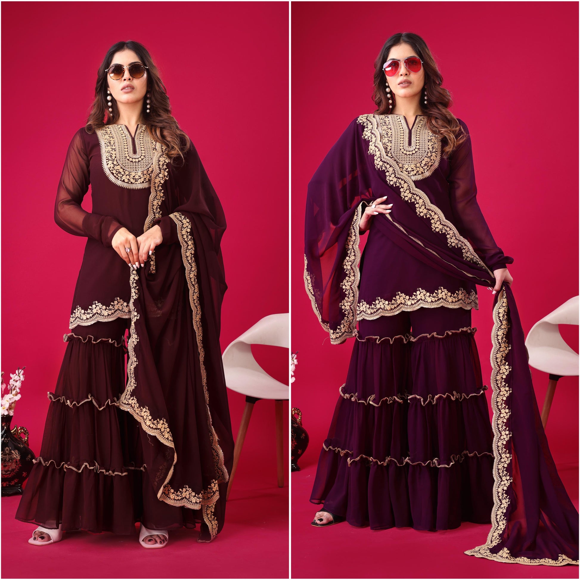 *Presenting New Designer Collection In Blooming Faux Georgette With Heavy Embroidery Sequence Thread Work Top-Bottom And Dupatta Set Fully Stitched Ready To Wear *