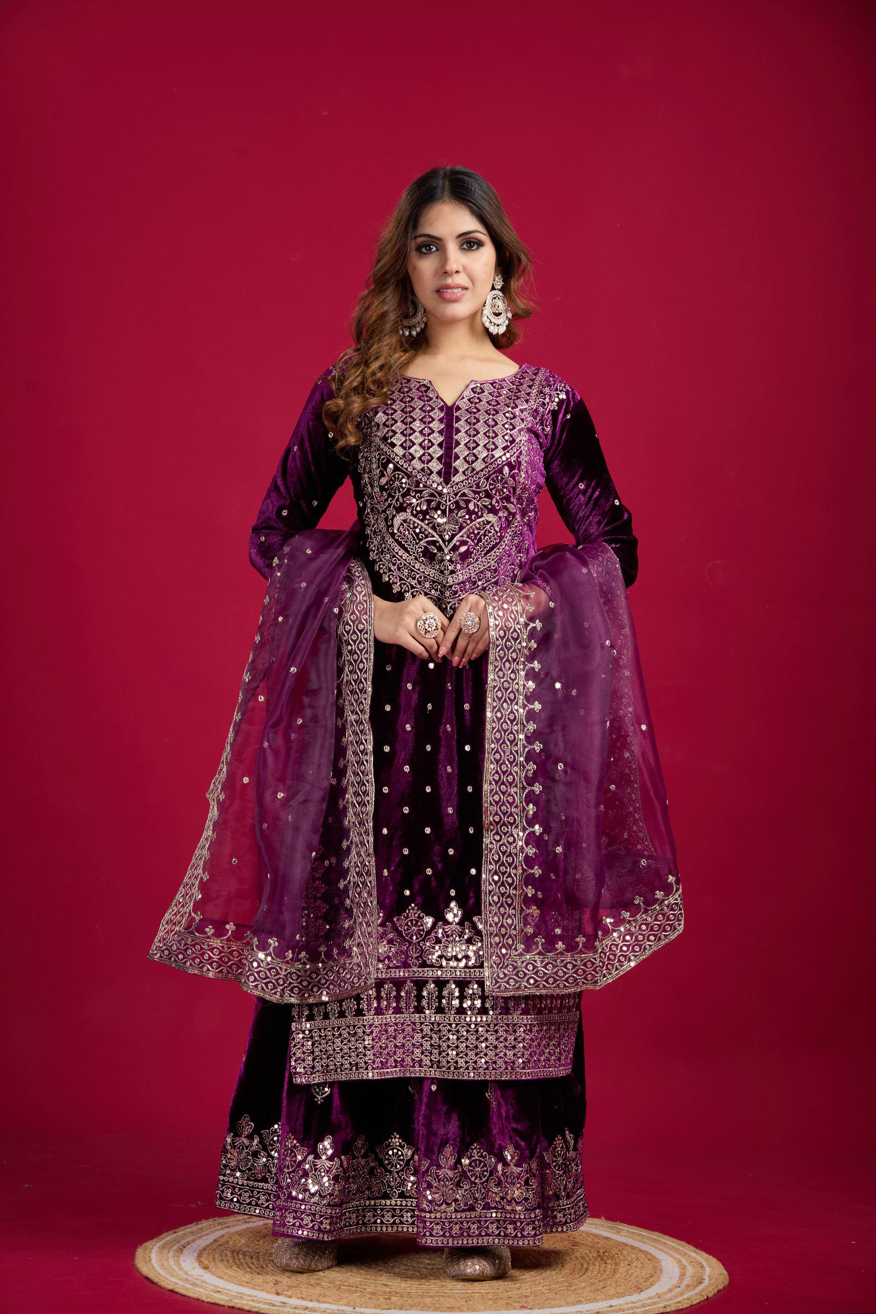 👗 *Bottom Fabric* : Viscose Velvet with *Heavy Embroidery sequence work With Fully Flair ( *Full Stiched l*)