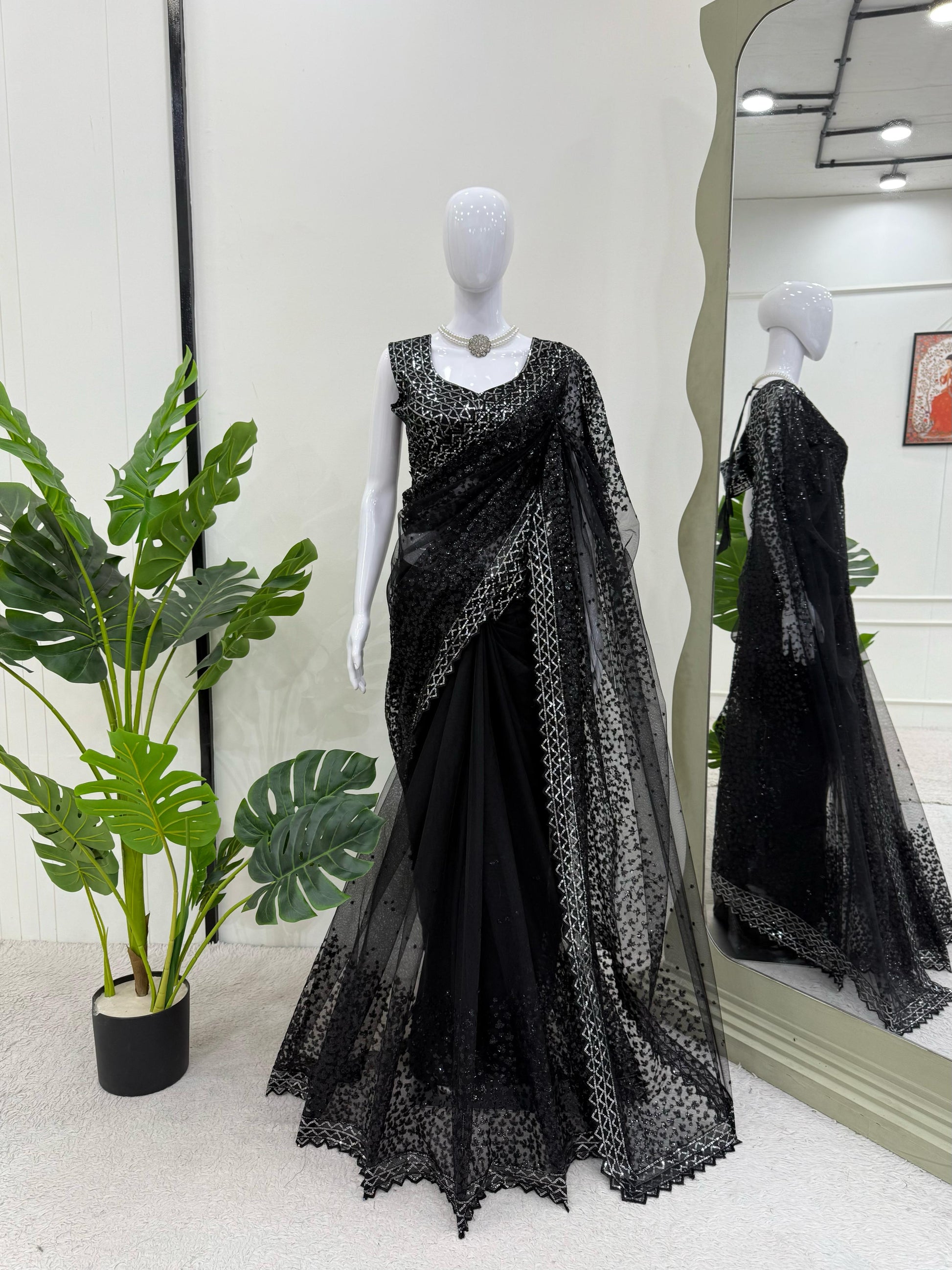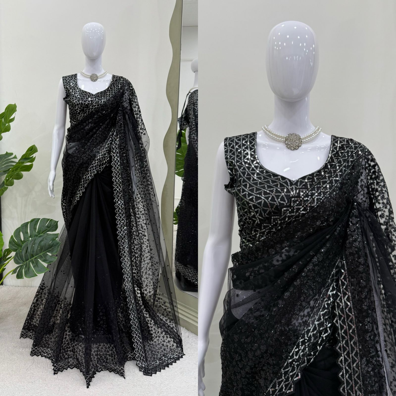 Looking some one for this same colour beautiful Designer Saree on Soft Net Febric with Sequnce work and blouse on also Soft Net Febric with Sequnce work.