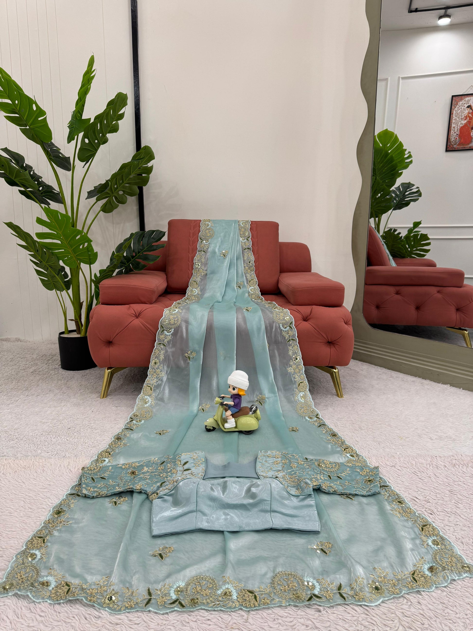 Looking some one for this same colour beautiful Designer Saree on Zimmy Chu Febric with Thred & Sequnce wok and Blouse on also Zinmy Chu Febric With Thred & Sequnce work.
