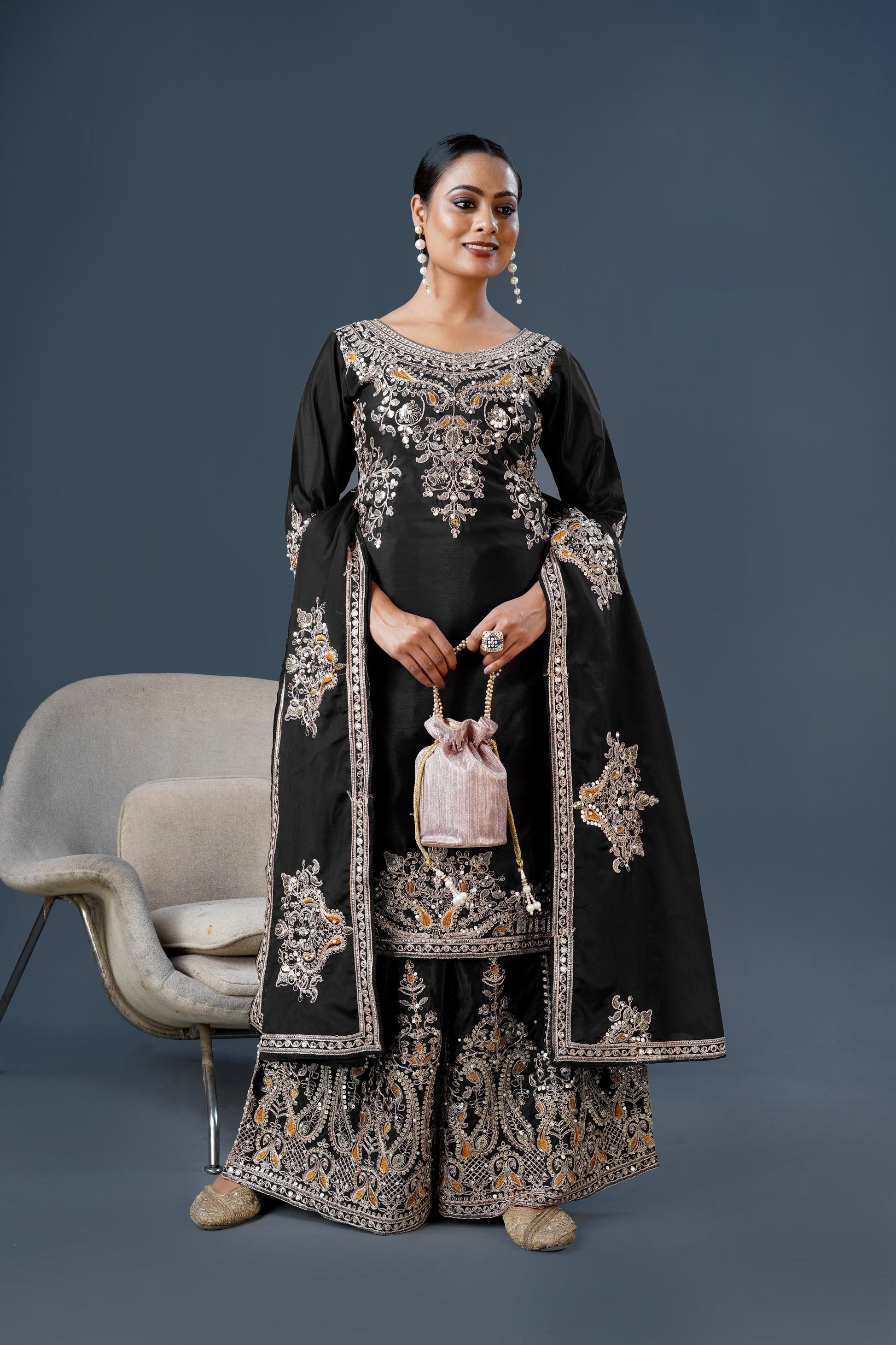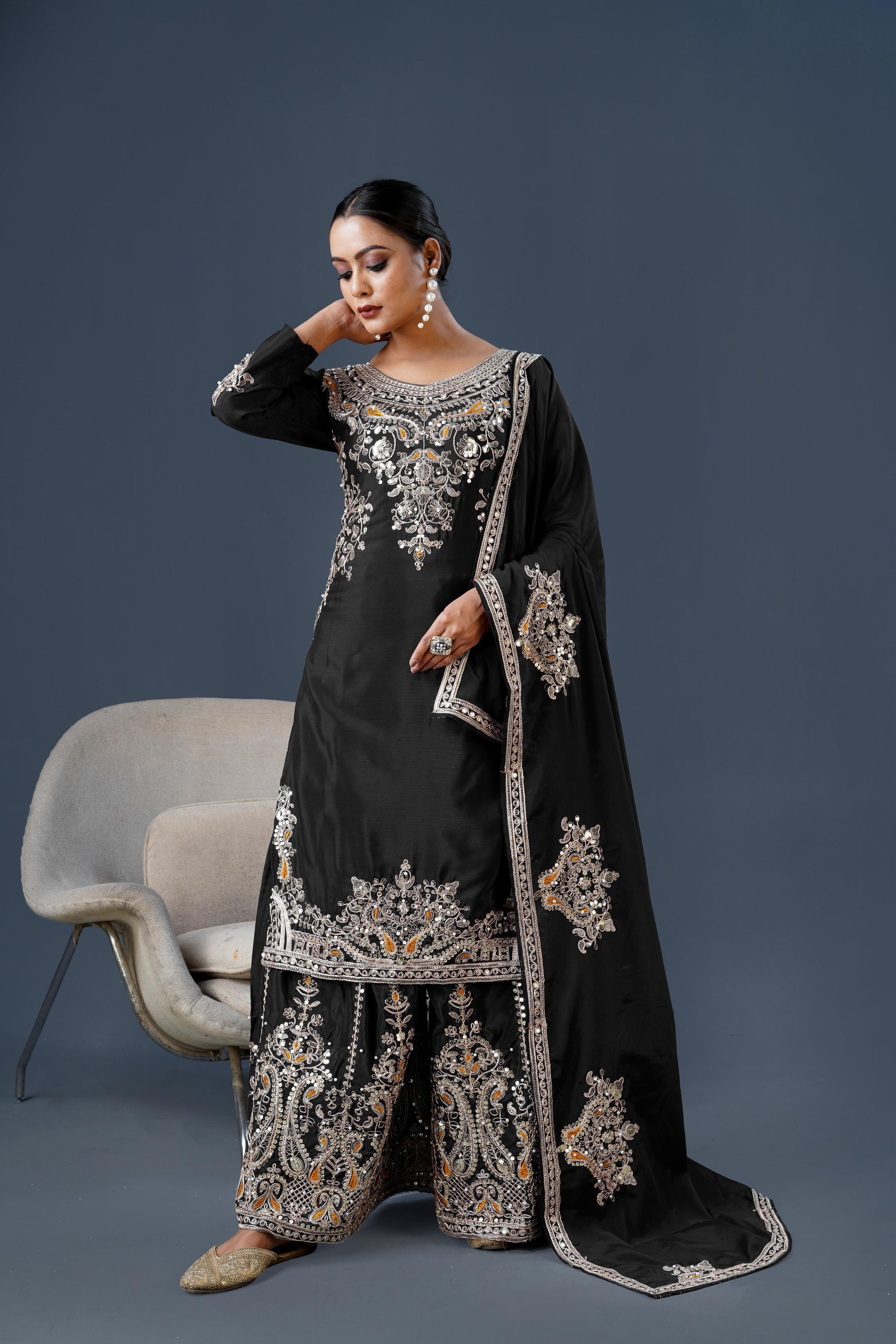 *Top Fabric* :Pure Chinnon Silk With Heavy Embroidery Coding Dori-Sequence Work With Full Sleeve