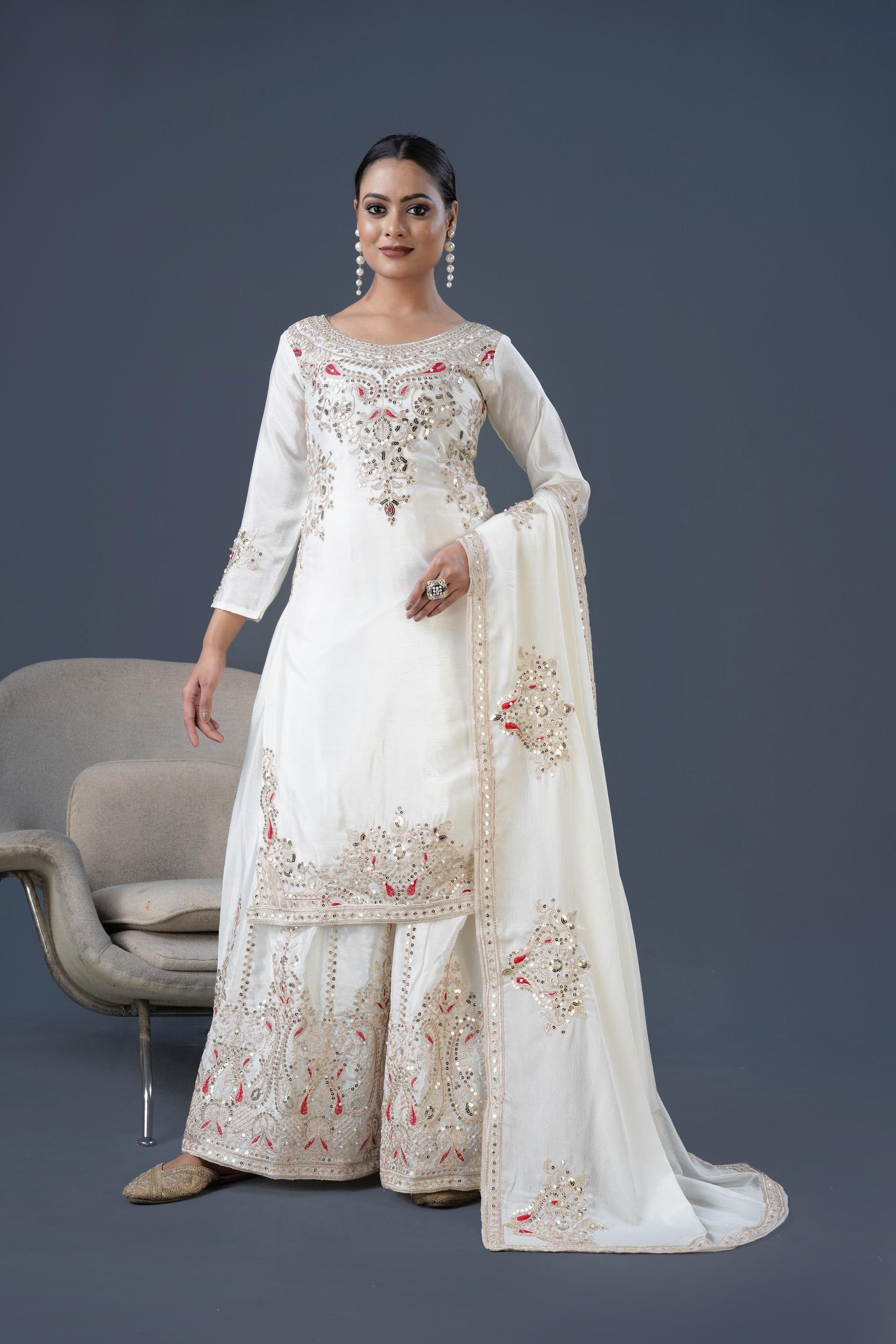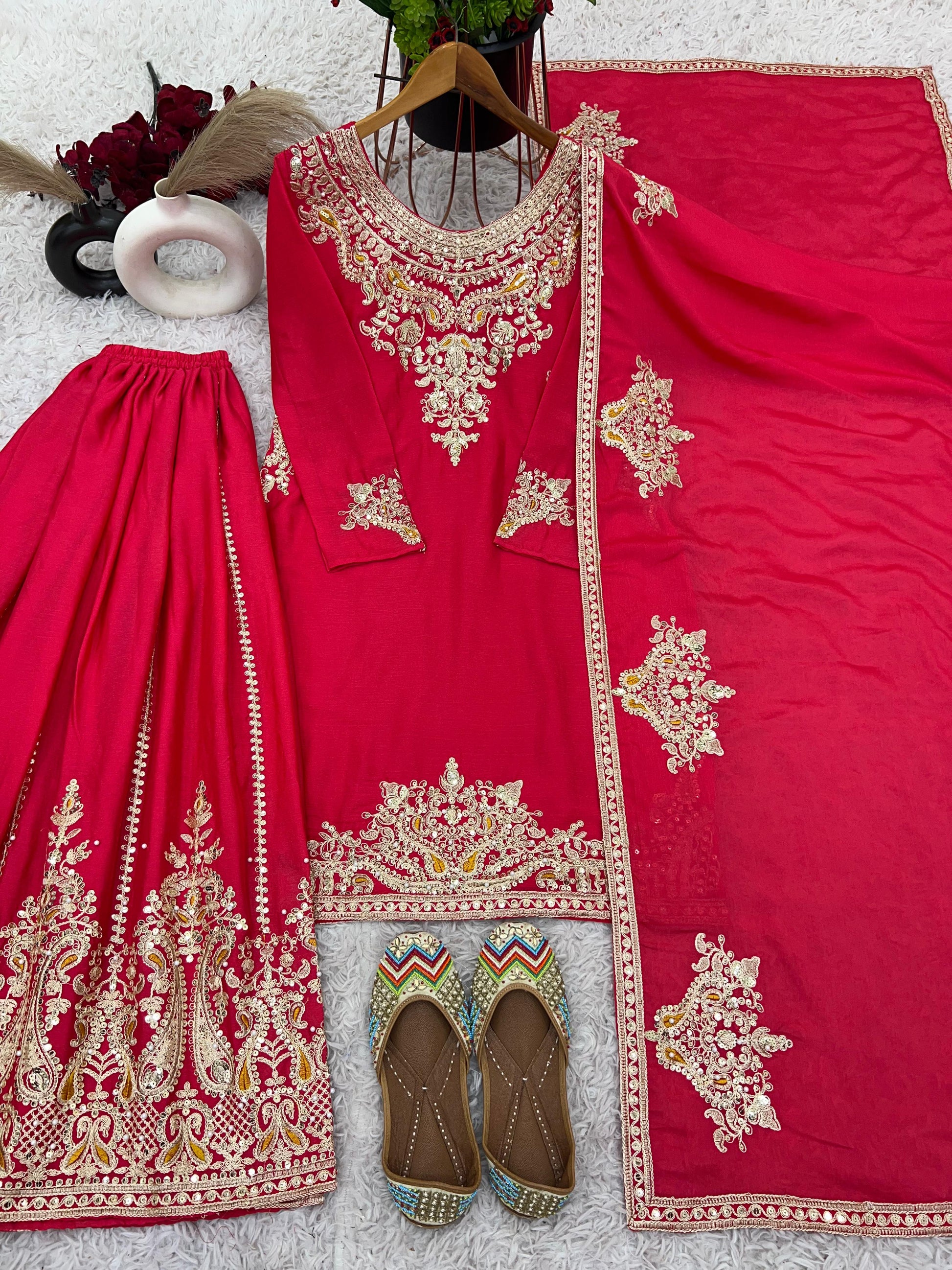*Presenting New Designer Collection In Pure Chinnon With Heavy Embroidery Coding Dori-Sequence Work Top-Bottom And Dupatta Set Fully Stitched Ready To Wear *