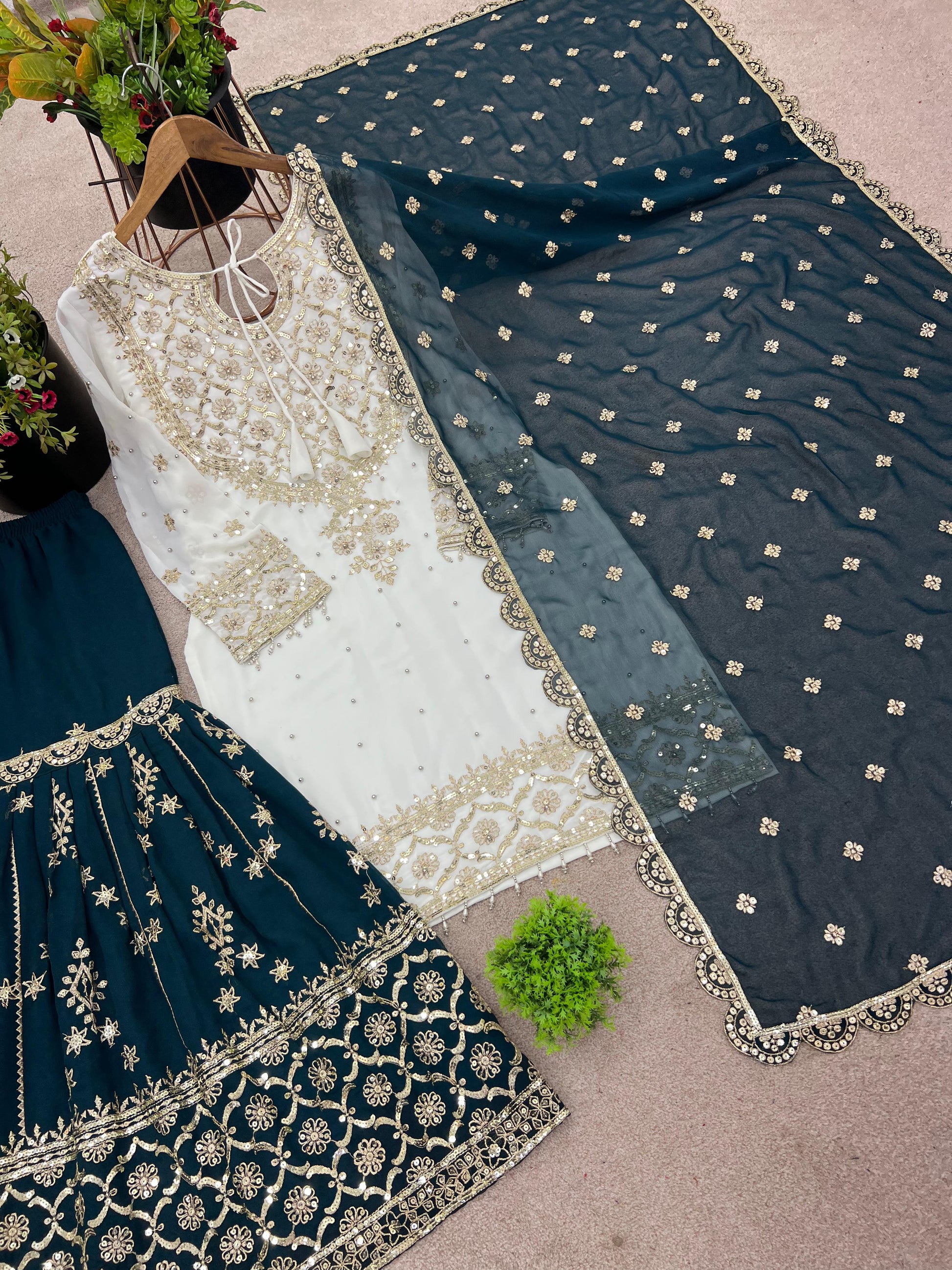 *Plazzo Fabrics* :Heavy Faux Georgette With 5mm Embroidery Sequence With Fully Flair