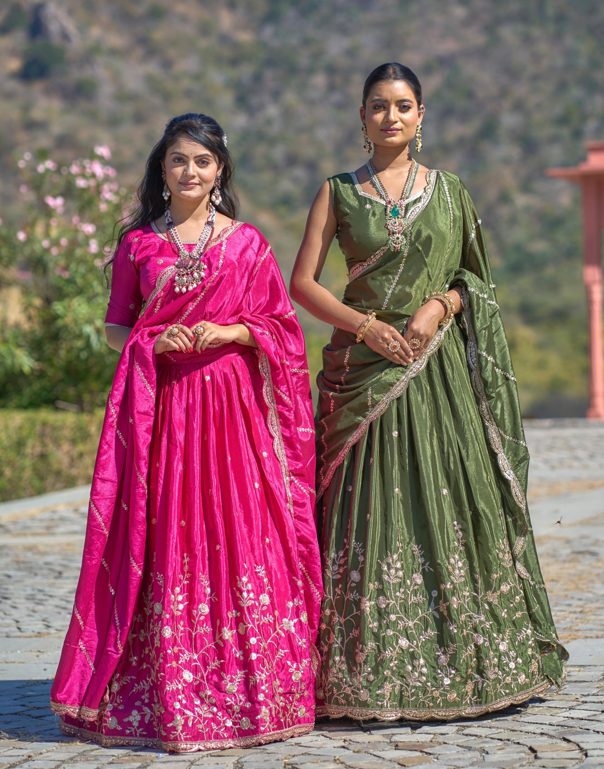 Elegance meets Trends in this embroidery lehengas, Embrace timeless style with a touch of tradition, perfect for any special occasion. A perfect balance between tradition and modernity.