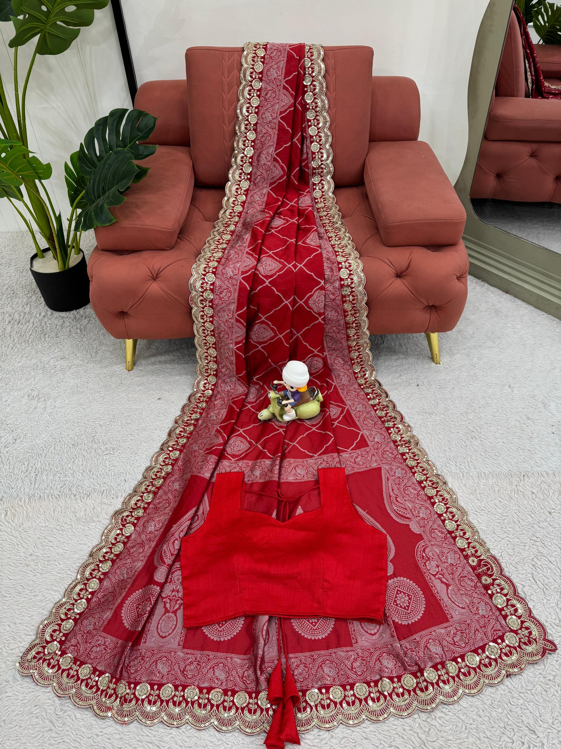 Red silk wedding saree Designer Partywear stitched Indian saree