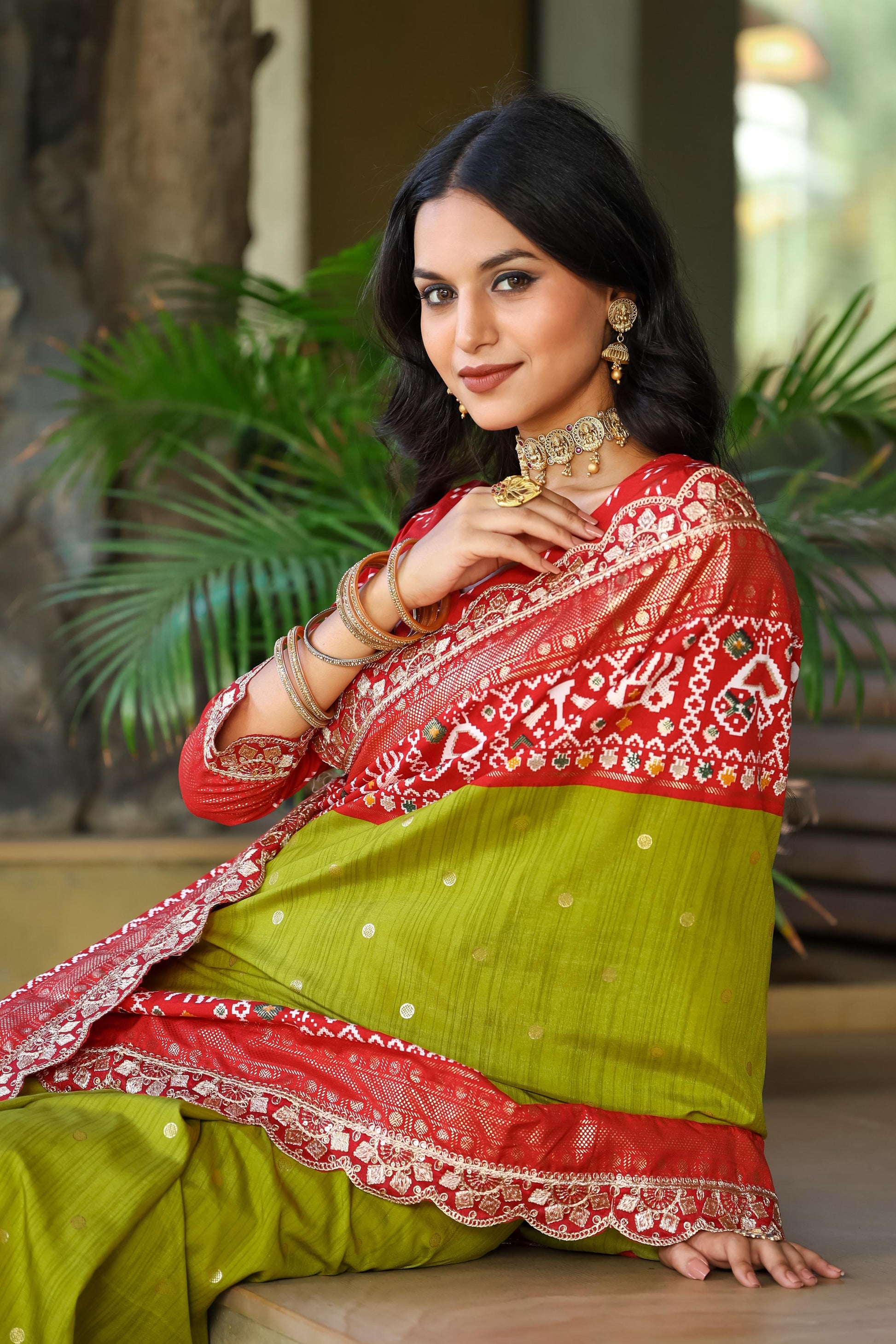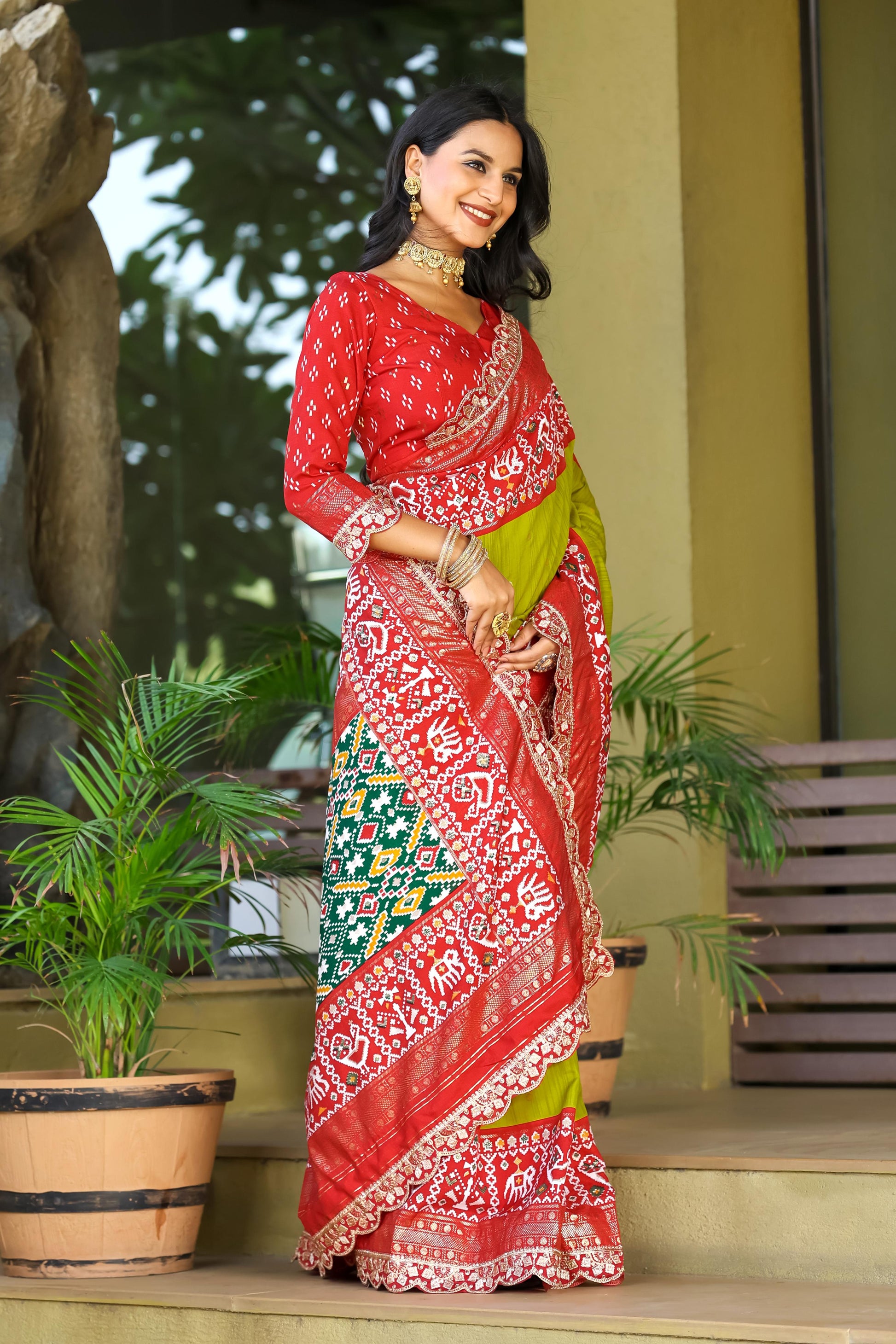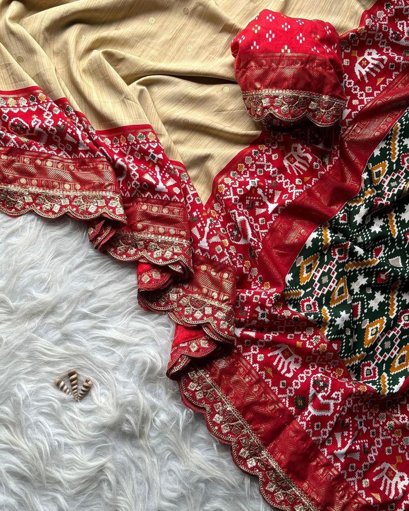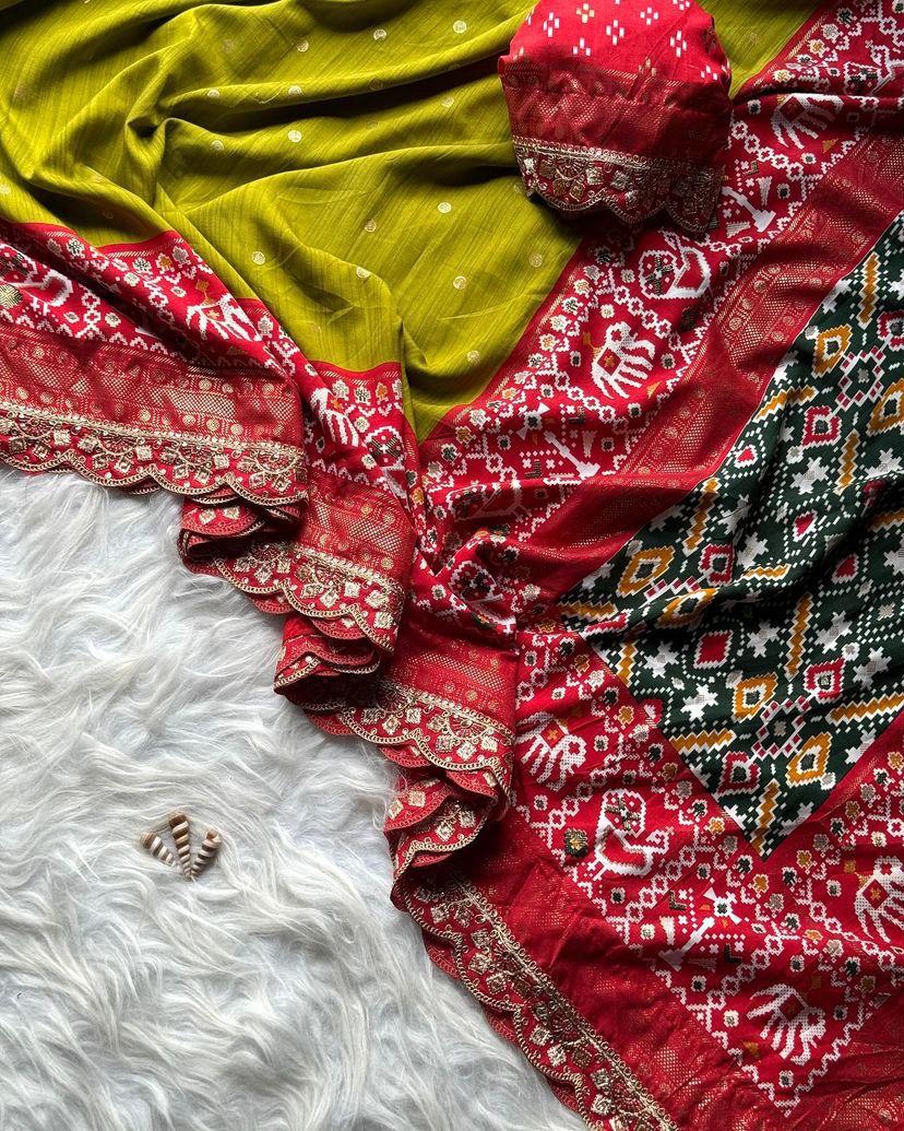*💃🏻 New Exclusive premium Pure patola silk saree with foil butties all over sarees atteched with heavy sequence lace border 💃🏻*