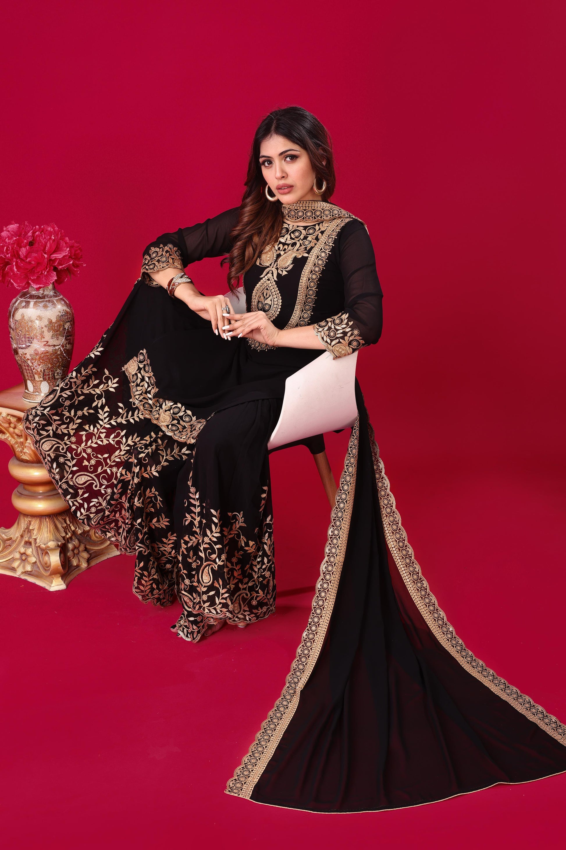 *Top Fabric* :*Blooming Faux Georgette With Heavy Embroidery Sequence Thread Work With Full Sleeve*