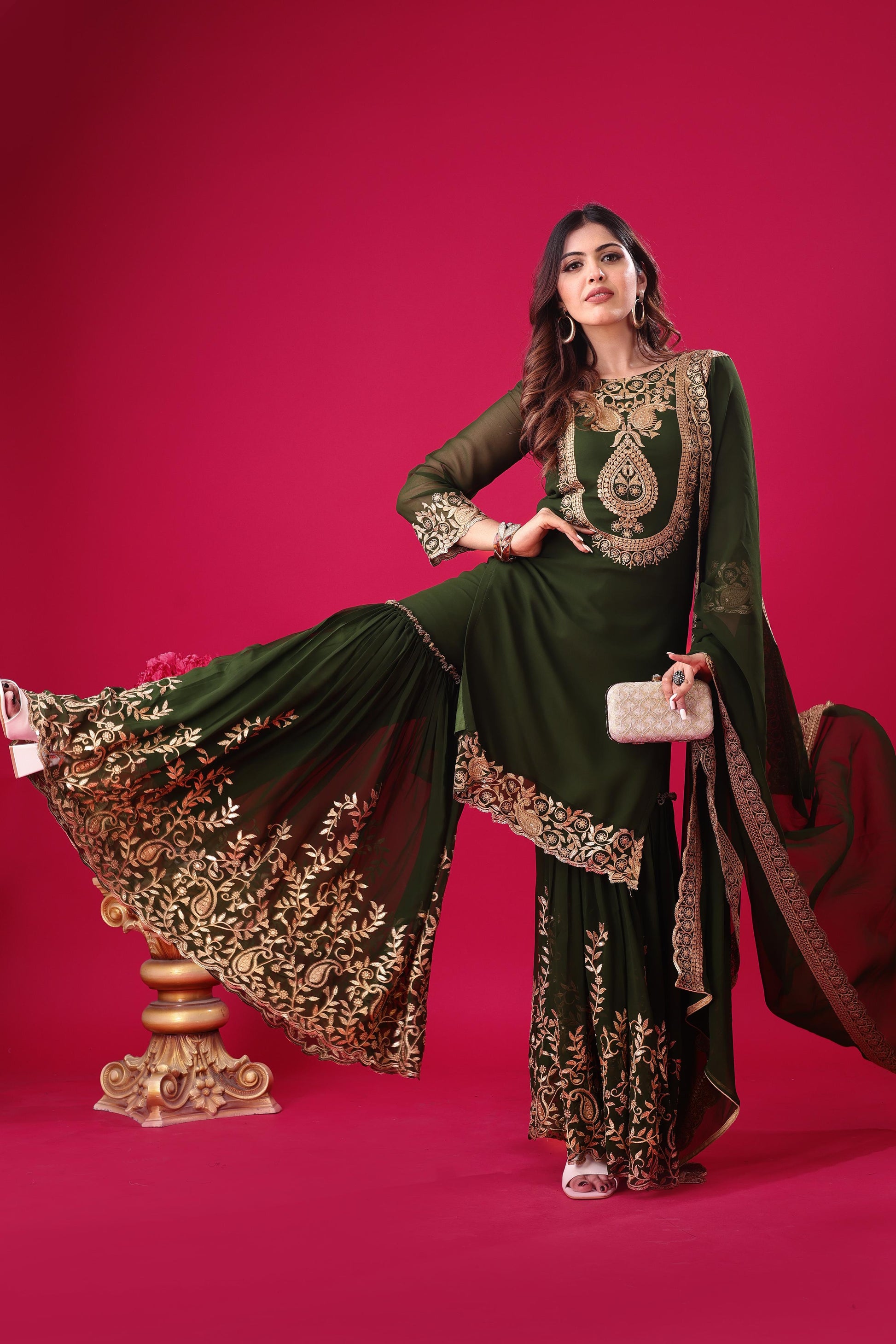 *Presenting New Designer Collection In Blooming Faux Georgette With Heavy Embroidery Sequence Thread Work Top-Bottom And Dupatta Set Fully Stitched Ready To Wear *