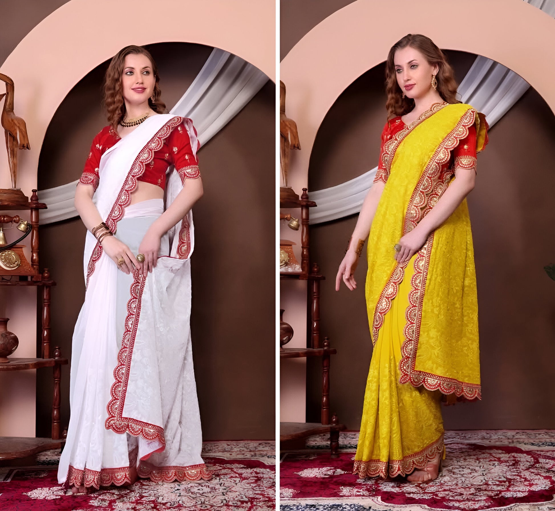*QUALITY- Soft Georgette Saree With All-Over Thread Chickenkari Style Jaal Embroidery*