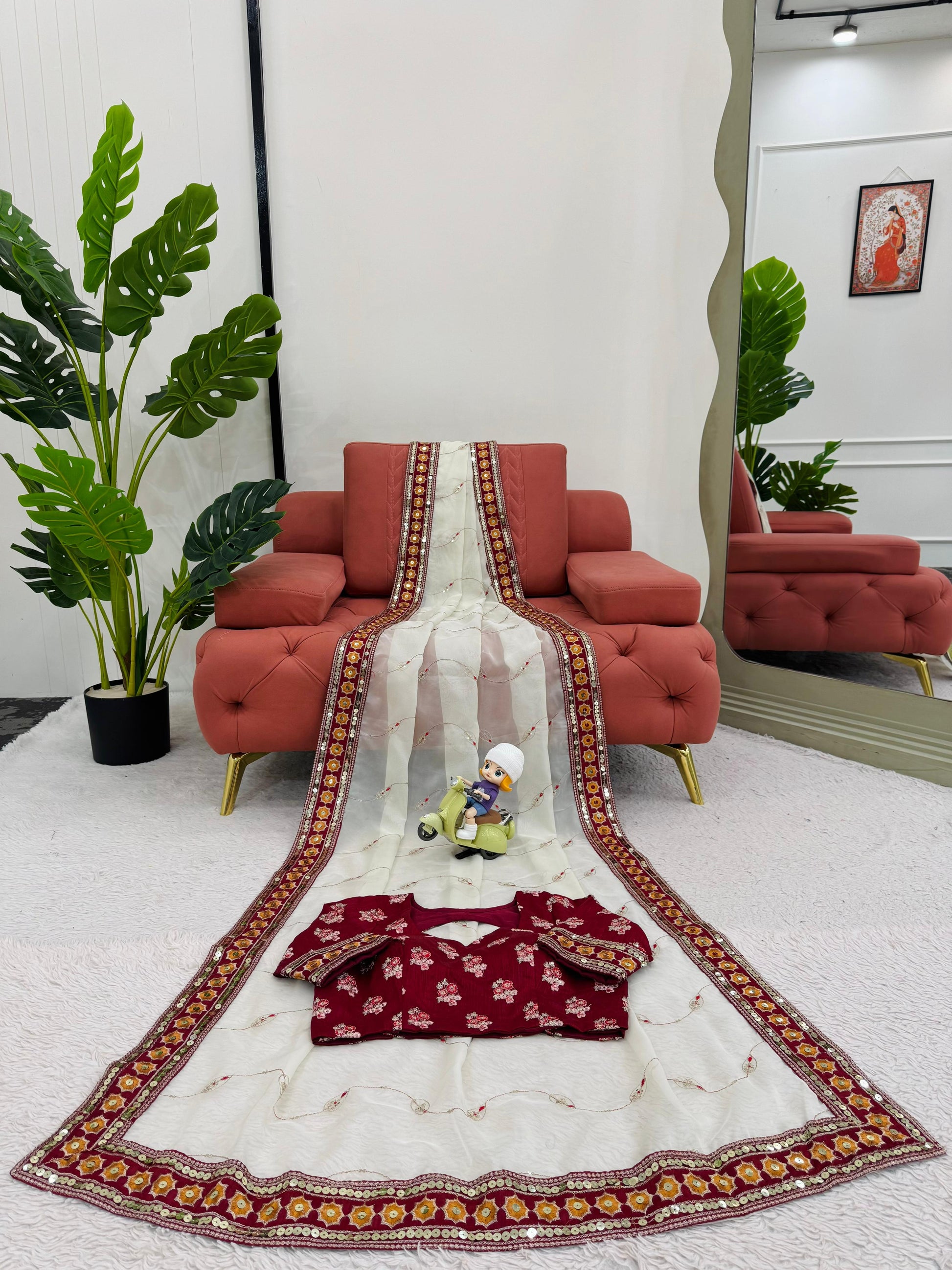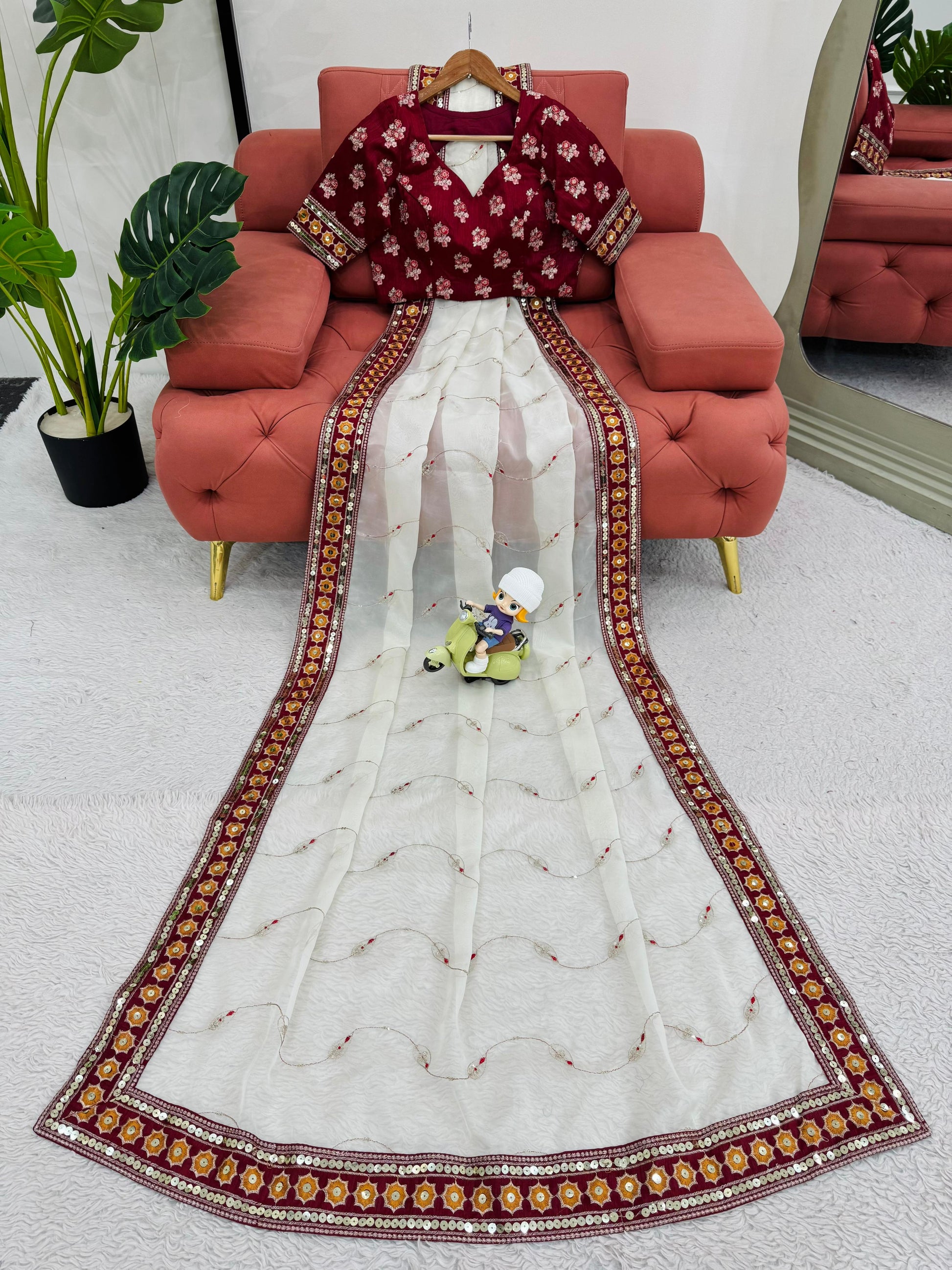 Wedding Wear Saree with stitched blouse Readymade Indian saree